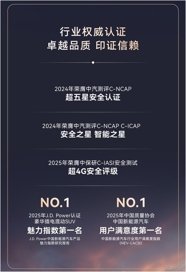 两年来,问界M9不仅赢得了市场,更获得了用户的高度认可。在杰兰路2024下半年-2025上半年新能源汽车品牌健康度研究中,问界M9连续两期获得新能源全车型用户净推荐值第一。此外,在中国质量协会发布的2025年中国新能源汽车行业用户满意度指数评测结果中,问界M9荣获第一名,在J.D. Power 魅力指数榜单中位列豪华插电混动SUV第一……这一系列殊荣,共同印证了这款现象级产品在新能源豪华车市场的领先实力,展现独特的标杆魅力。
