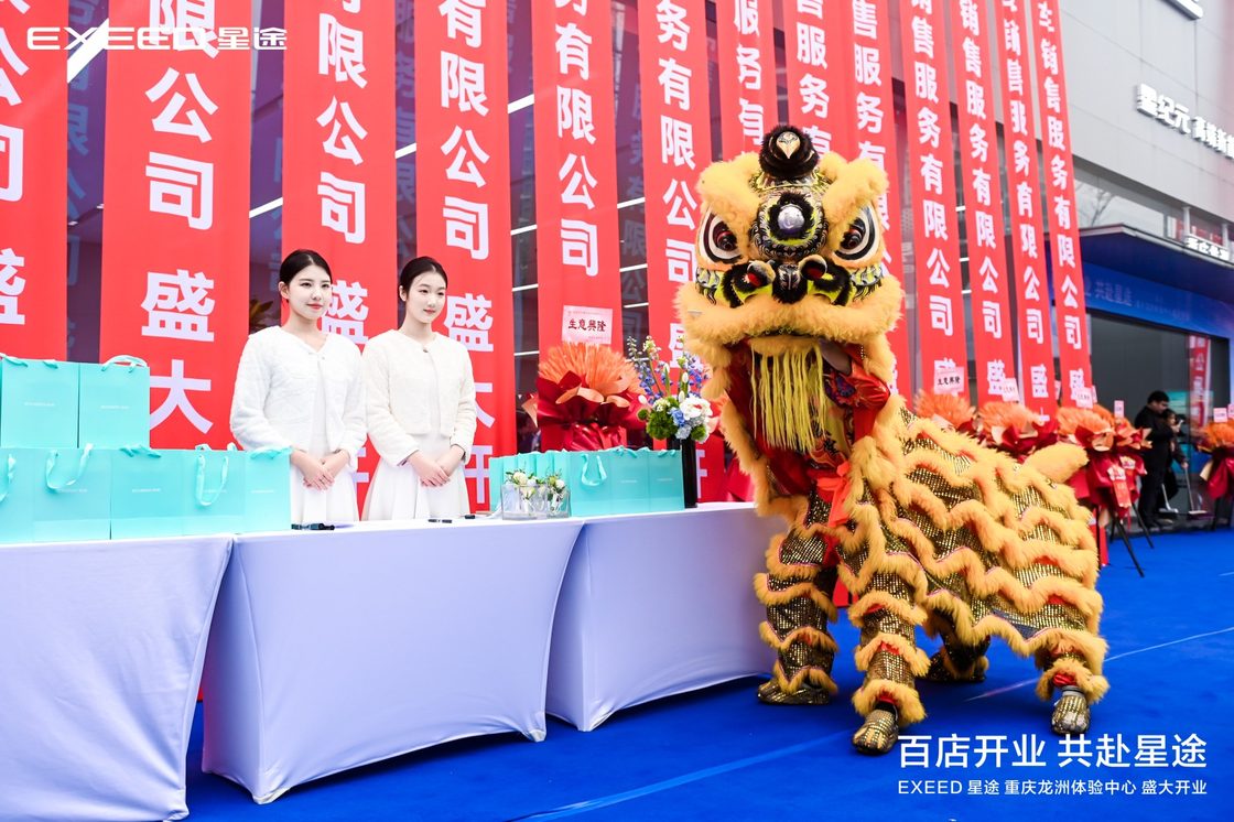 开业当日,体验中心外锣鼓喧天,气势恢宏的舞狮迎宾与清雅悠扬的乐器暖场相继上演,传统东方礼仪与现代艺术氛围交织,瞬间点燃现场热情。在万众瞩目的倒计时后,一段充满力量与科技感的全新开场舞,正式拉开庆典序幕。主持人以激昂之声,向莅临现场的各界嘉宾、媒体朋友及星途车主表达了热烈欢迎。