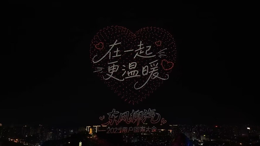 当暮色彻底漫过古镇,柳州最大规模的无人机编队骤然升空,3500架无人机集结成阵,以天为幕、以光为笔,依次点亮柳宗元、风雨桥、文庙等柳州文化符号,最终聚焦1954年东风柳汽诞生的坐标与“乘龙”“风行”品牌标识。这场夜空表演,是“乘龙行天下”的壮志与“心怀星海 共赴美好”的温暖交织,诉说着品牌与用户的深厚情谊,为盛会添上浪漫震撼的底色。