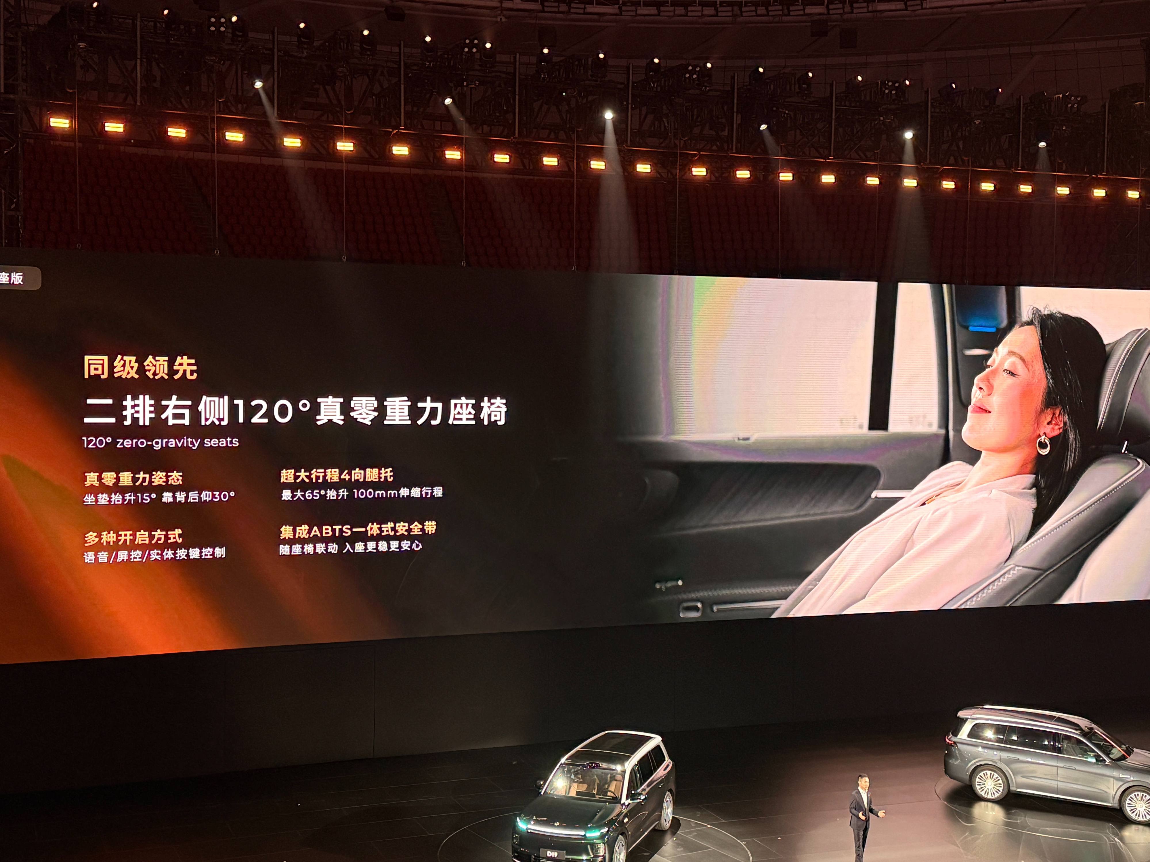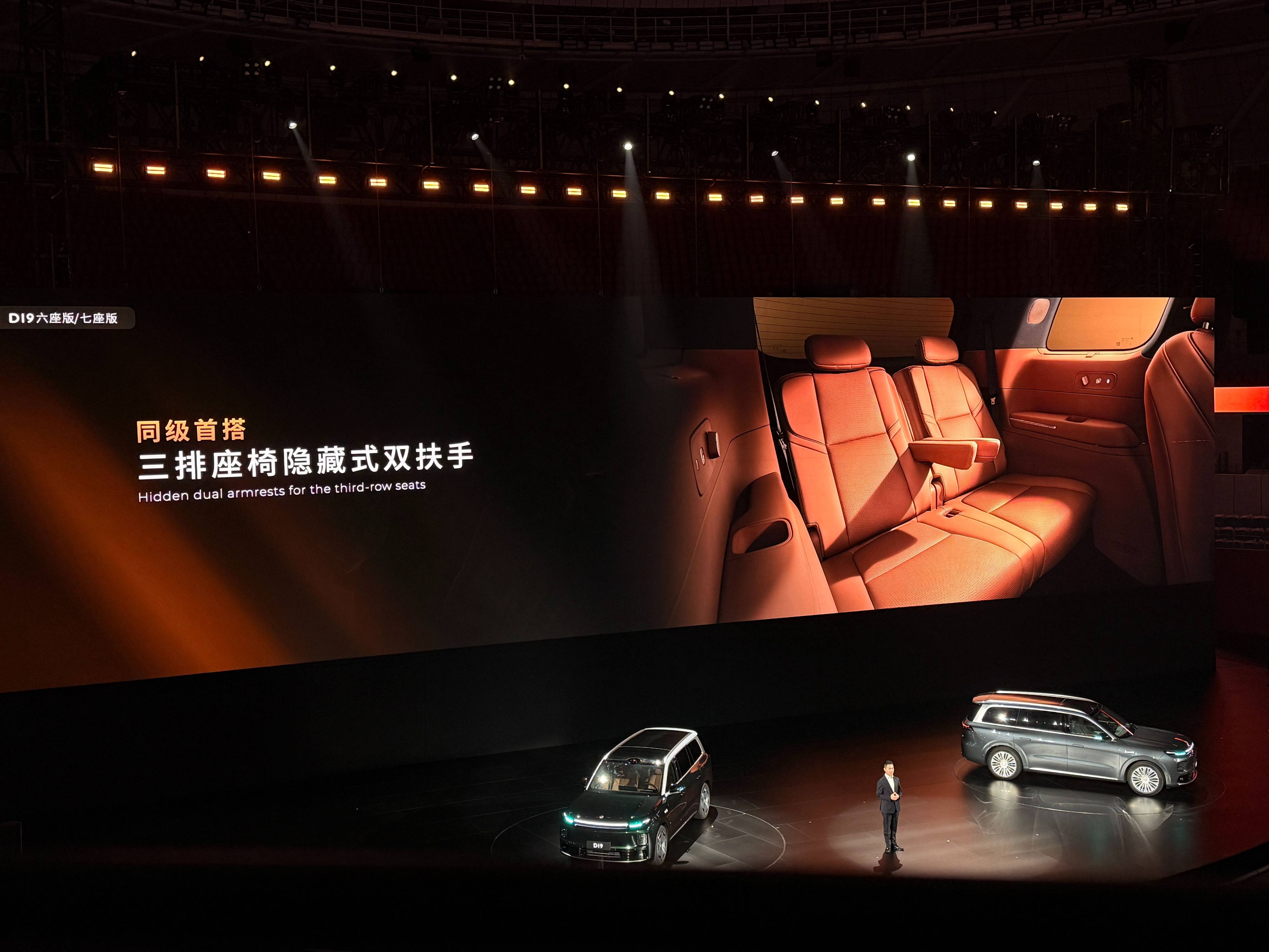 空间方面,零跑D19即使是第三排都具备了较好的空间表现,座椅的配置更是直接拉满,6座车型的第二排配备了120°零重力座椅,支持坐垫抬升15°和4向大行程腿托,第三排座椅还配备有双扶手,保障第三排乘客也有不错的乘坐舒适性,配置方面,前两排座椅配备吸风式座椅通风和10点式座椅按摩功能,全车座椅都配备有座椅加热功能,第二排还有双折叠小桌板,小桌板上还贴心的配备了开口较深的杯架。