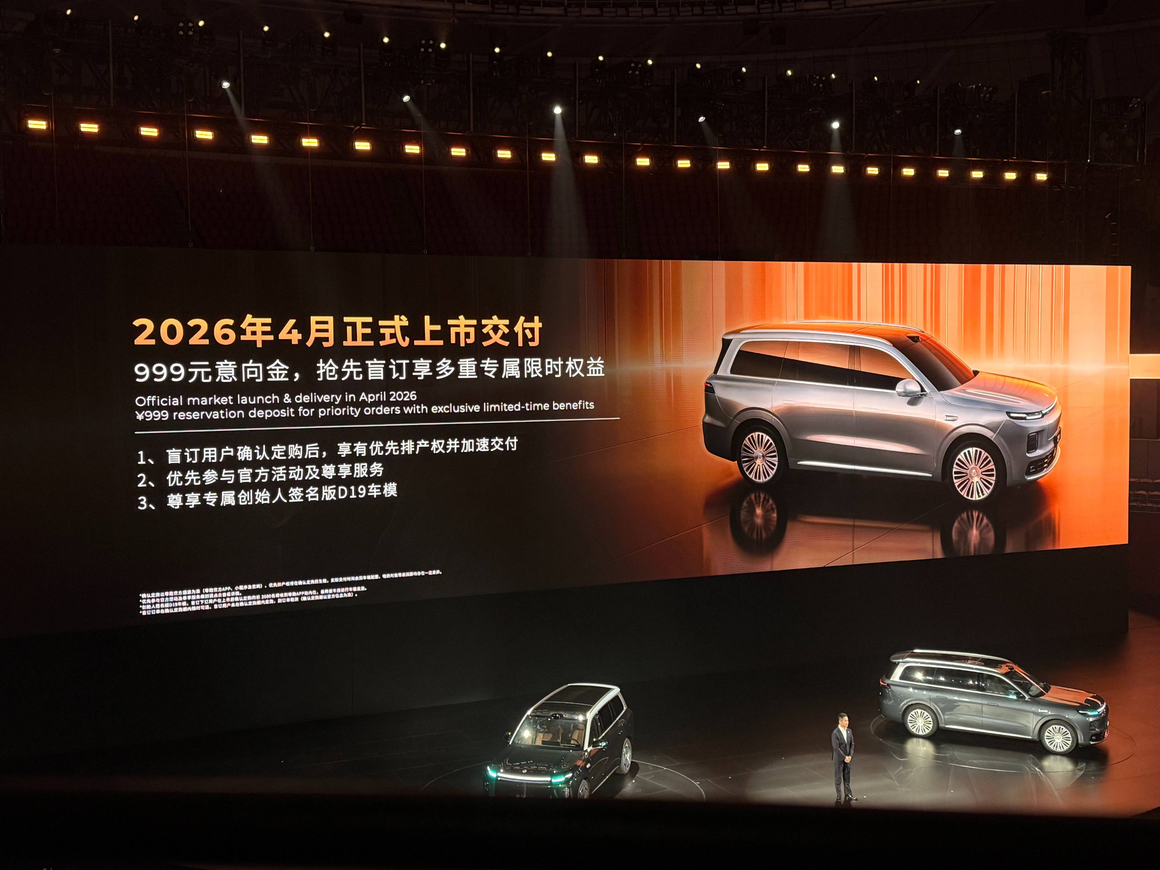 零跑的车型性价比表现一直都很突出,零跑D19作为旗舰车型,预计售价在25-30万这个区间,2026年4月将正式上市并交付,现在可以999元意向金盲订,盲订用户享有优先排产权。