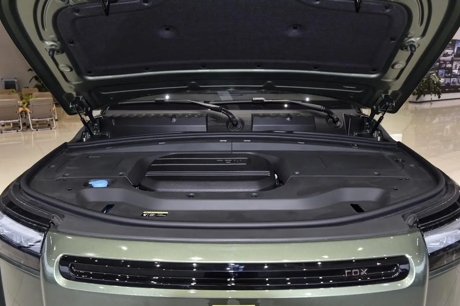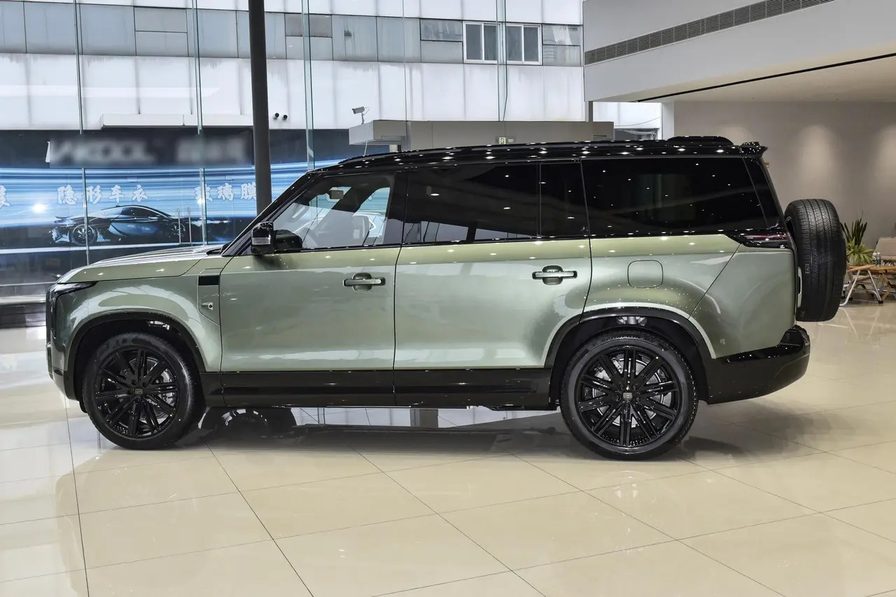 先说样子。ADAMAS基本上延续了极石01那副硬朗的方盒子身板,超过5米的车长和3米的轴距,气场是足的,但细节变精致了:中网边框和车身同色了,全新的双色Logo(黑底金边)也安排上了,它没有用隐藏式门把手,还是常规造型,车尾采用的是外挂式备胎,你可以说它不够新潮,但必须承认这种风格在满街主流车型设计里,辨识度很高。