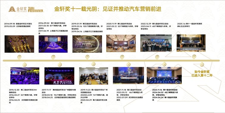 自2014年创办以来,金轩奖已陪伴中国汽车营销走过12个年头,与轩辕奖、铃轩奖协同构建起中国汽车全产业链专业评价体系,成为行业公认的“营销风向标”。