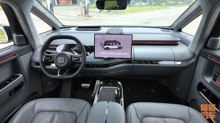 进入车内,能够电动调节的功能都尽量采用了电动设计,但中控屏幕支持手动旋转,可以转向副驾或主驾一侧,也可以保持在中间位置。这块屏幕尺寸为15.05英寸,搭载8295芯片,操作流畅度较好。