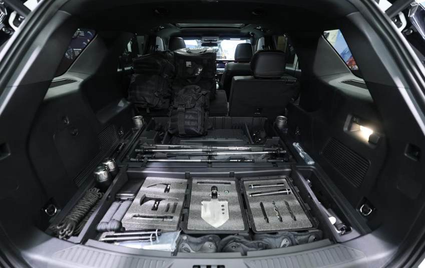 与注重“硬核豪华”体验的昆仑巅峰版形成鲜明互补,昆仑穿越版更侧重于功能的纯粹与空间的极致。作为一款大五座SUV,昆仑穿越版打破了传统SUV的空间布局思维,在常规状态下,后备厢容积已达1505L;当第二排座椅放倒后,装载容积更可扩展至2487L,可瞬间形成一个纵深近2米的纯平空间,变身“移动大床房”,轻松容纳山地自行车、滑雪板、全套露营桌椅等大型装备。细节上,车辆还设计了15个隐藏储物格,拓展近100L灵活储物空间,确保各类物品与随身器材的分区收纳,让所有探索装备井井有条。