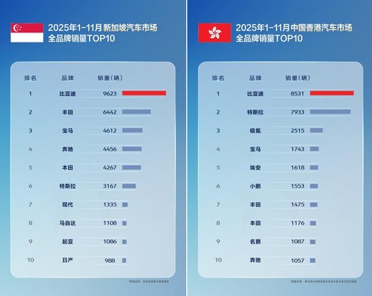 比亚迪前十一月全球多市场夺冠,多国销量超越特斯拉
