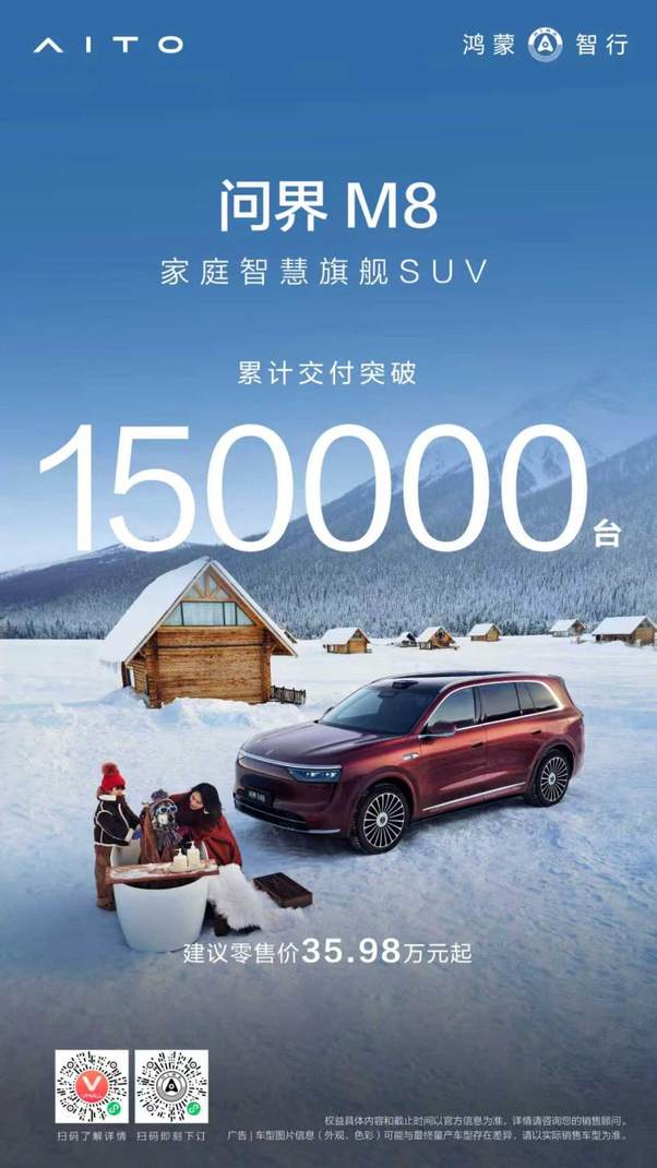 “8个月15万辆”的行业罕见交付速度,也从来不是一蹴而就,而是问界M8一步一个脚印深耕品质的匠心积淀,是问界M8秉承“智慧重塑豪华”理念,对家庭全场景出行需求的深度解构与精准响应。它精准满足了家庭用户对高品质、智能化、情感化的出行诉求,不仅彰显了中国品牌在高端汽车市场的核心竞争力,更为行业树立起中国品牌打造高端豪华车型、践行高质量发展的实力典范。