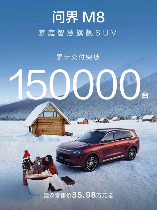 15万辆里程碑达成,问界M8筑牢40万级豪华SUV销量标杆!