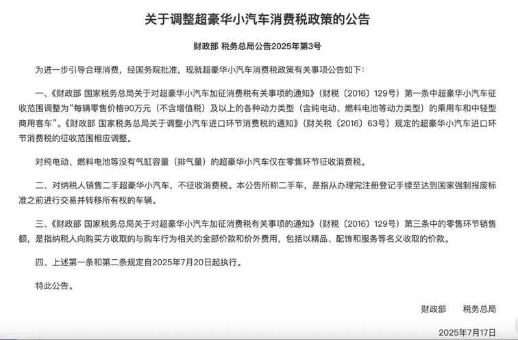 同时市场环境的变动也为国产车创造了机会。2025年豪车消费税起征点下调至90万元,传统燃油豪华车成本上升,部分消费者转而关注性价比更高的新能源国产车型。