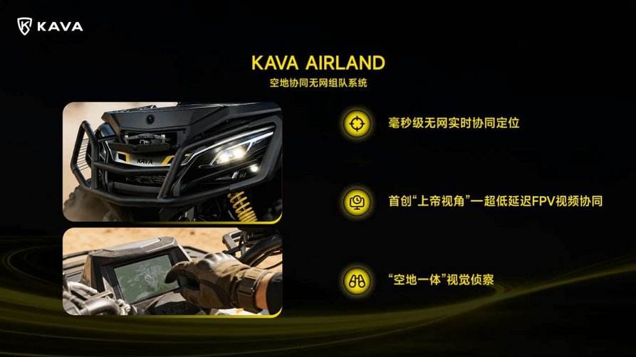 这一重构首先击中了户外场景最致命的痛点——信息孤岛。在传统车队穿越中,信息传递依赖手台和经验,队尾车辆对前方路况一无所知,这是最大的安全隐患。KAVA的 Kava Airland空地一体系统,其革命性在于构建了一个独立于公网的微型物联网。车辆与无人机、车辆与车辆之间,形成了实时数据共享的“蜂群思维”。无人机成为车队共用的“空中之眼”,其侦察画面实时同步至每一块车载屏幕。这意味着,整个车队拥有了统一的态势感知能力,决策从依赖个人英雄主义,变为基于透明信息的集体协作。这解决的并非锦上添花的“娱乐需求”,而是雪中送炭的“生存与效率”需求。