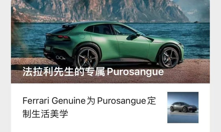 但一场巧合让这场“致敬”的火药味变浓了。YU7发布当日,法拉利中国恰好在社交媒体发布了一辆绿色Purosangue的图文,配文“法拉利先生的专属Purosangue”。而“宝石绿”正是小米YU7当时主推的颜色。
