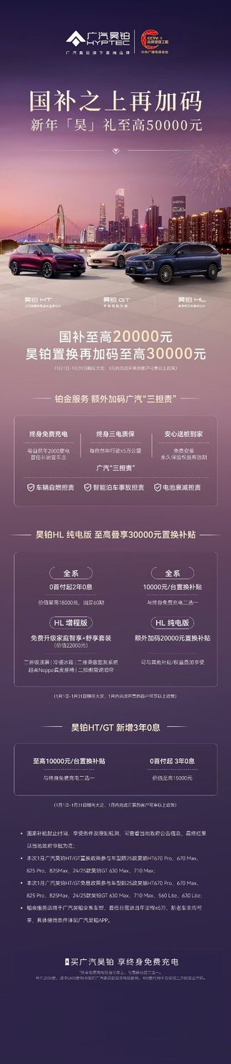 进入2026年,广汽昊铂品牌针对旗下多款车型推出“政企双补”限时礼遇,以最高可享50000元的组合权益,为用户带来新春购最佳购车时机。