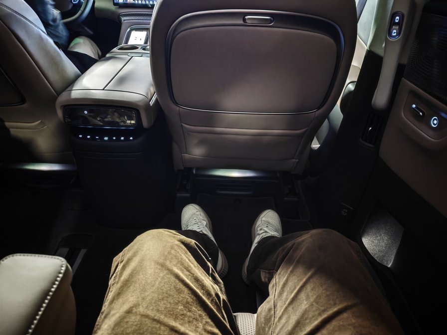 空间表现和乘坐舒适性同样让我十分满意。乘坐空间堪称巨大,后两排的可调幅度可观,把第二排调到非常靠后的近乎“大四座”状态下,腿部空间无比奢侈,摆什么姿势都不过分。