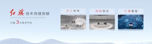红旗品牌天工纯电、鸿鹄混动、九章智能三大技术平台