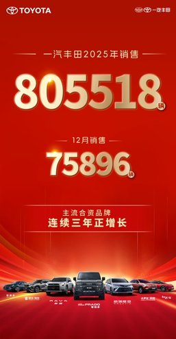 2025年一汽丰田新车销售805518辆,连续三年正增长