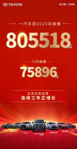 2025年一汽丰田新车销售805518辆 成就连续三年正增长主流合资车企
