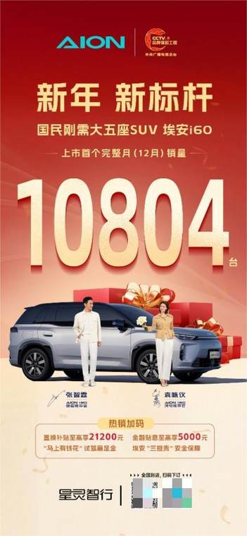 对于仍在春节前纠结“选哪款车更靠谱”的家庭而言,埃安i60的首月万人选择,已提前完成了市场验证。选择销冠,即是选择了经过严苛场景检验的可靠伙伴,也是抓住了政策与厂家福利的最佳购车时机。春运大幕将启,是时候下定那份让全家安心、舒心、省心的“团圆座驾”了。