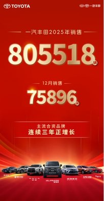 2025年一汽丰田新车销售805518辆,成就连续三年正增长主流合资车企