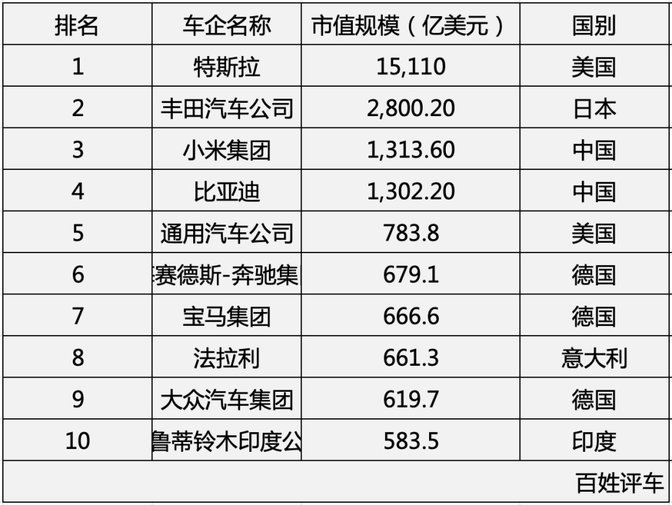 2025全球车企市值榜:特斯拉领衔,中国力量竟然进入前三