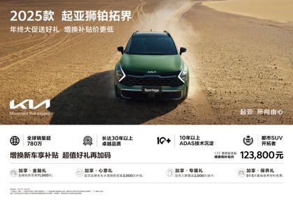 目前,2025款起亚狮铂拓界还推出了多重购车钜惠,12月31日前购买新车的用户,可享“年末大促价+增换购补贴价”组合权益,以官方指导价189,800元的1.5T尊贵智享版为例,增换购补贴价仅需123,800元。此外,消费者购车还可享金融贴息至高11,000元、起亚品牌老车主增换购至高3,000元补贴、定向人群赠送2,000元油卡,以及5年5次基础保养材料免费等权益,将购车福利拉满。