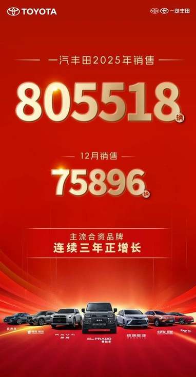 2025年一汽丰田新车销售805518辆,连续三年正增长主流合资车企
