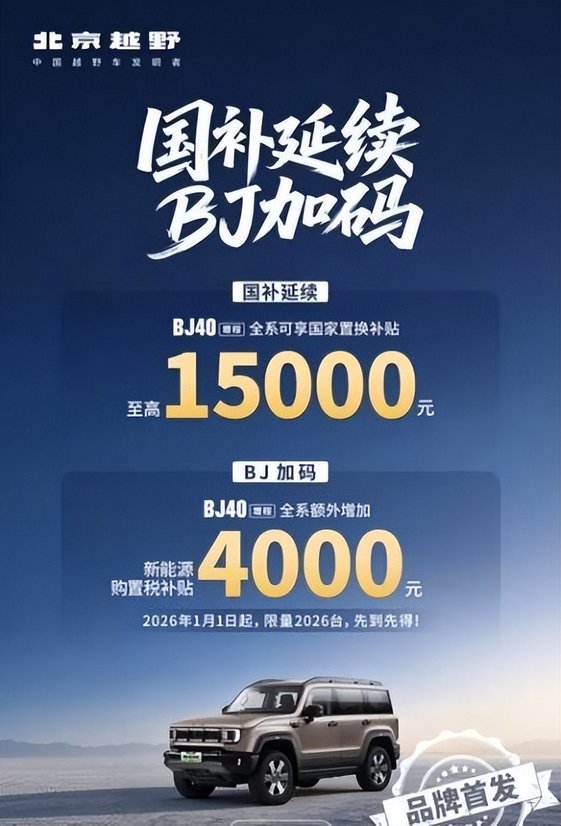 开年福利加码!BJ40增程享“国补+厂补”双补贴,限量2026台
