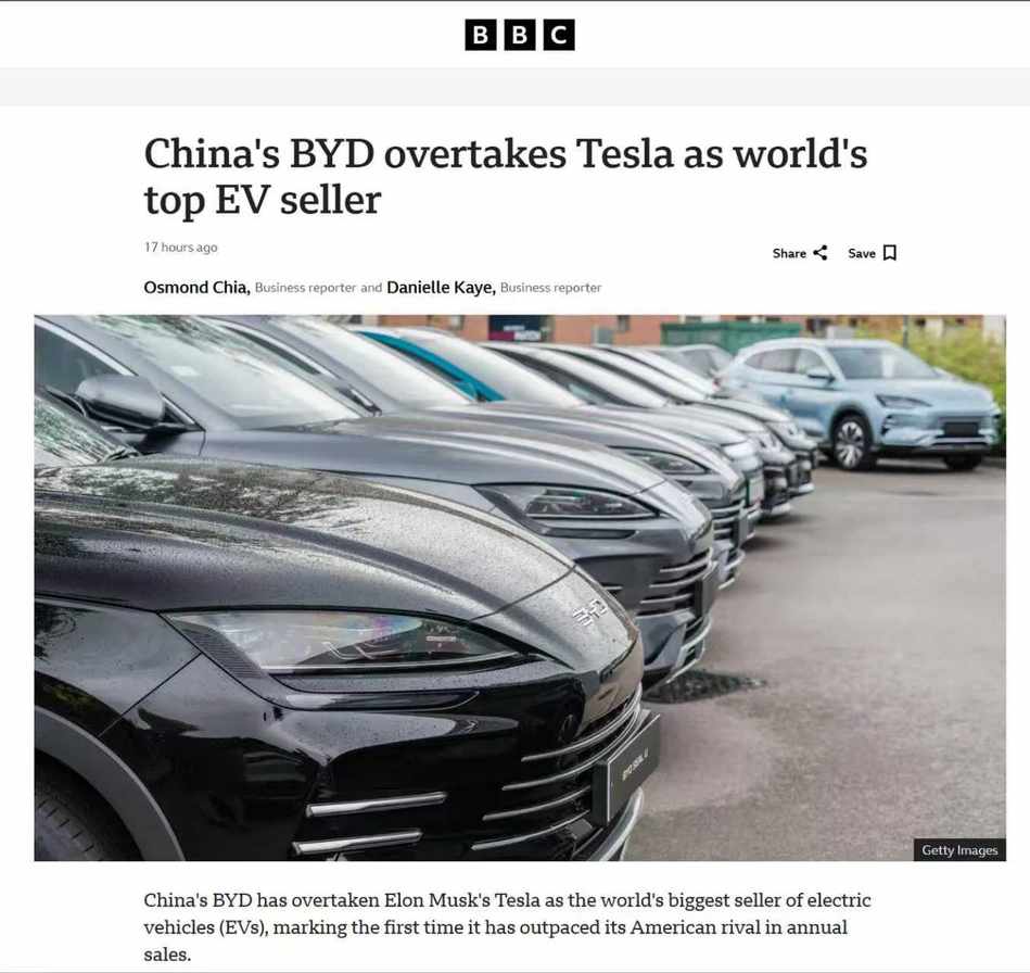 这场逆袭还自带 “打脸名场面”!14 年前,特斯拉 CEO 马斯克曾公然 dismissing 比亚迪 “不算对手”,如今外媒集体刷屏 “真香预警”——CNN 直言 “世界迎来新 EV 王者,非特斯拉”,BBC 重磅报道 “中国比亚迪超越特斯拉登顶全球”,国际舆论场的转向,正是比亚迪实力逆袭的最佳注脚。