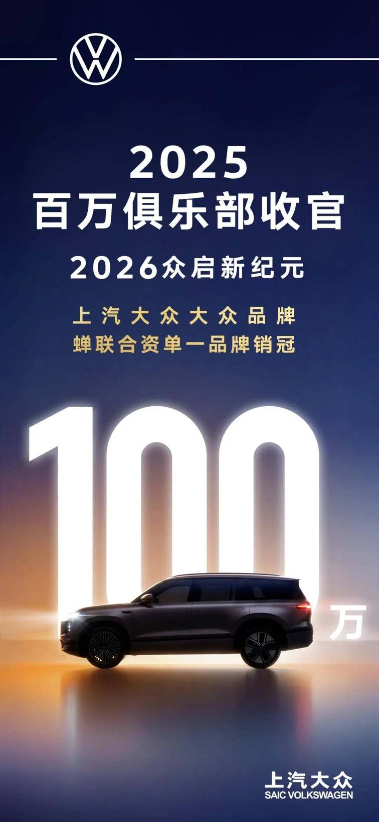 上汽大众2025年销量突破百万大关,终端销售106万辆