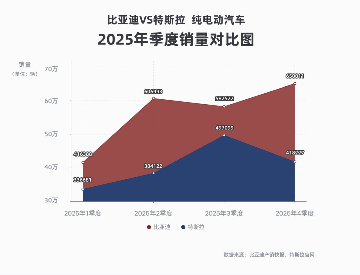 2025年全球纯电销冠易主,比亚迪以225.7万辆纯电销量超越特斯拉,当之无愧的新能源销冠。但比起年度数据,更值得细品的是它的长期主义。连续五个季度稳压特斯拉,绝非偶然。当很多品牌还在纠结单一市场份额时,比亚迪早已把棋盘铺到了119个国家和地区,2025年海外销量破百万就是最好证明。更关键的是它的底层逻辑:在巴西、泰国建生产基地搞本土化,8艘自营滚装船打通运输链路,这种“产能+供应链”的双保险,让海外交付效率直接拉满。不是特斯拉不够强,而是比亚迪把“全球卖车”玩成了“全球造车+全球运车”。这场超越,本质是中国车企体系化能力的胜利,也让全球市场看到,新能源竞争早已进入“综合实力博弈”的新阶段。