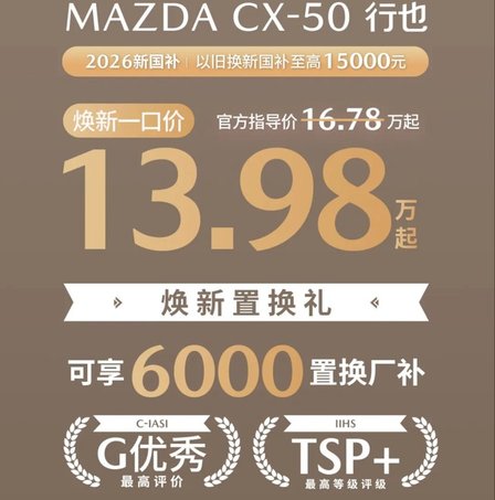 长安马自达针对旗下两款车型推出限时优惠,其中,马自达CX-50行也焕新一口价13.98万起,相较指导价优惠2.8万元;而马自达EZ-60运动版至高可享以旧换新国补2万元。同为日系车企的东风日产,针对天籁鸿蒙座舱舒适版限时价12.99万起,较指导价优惠1万元。