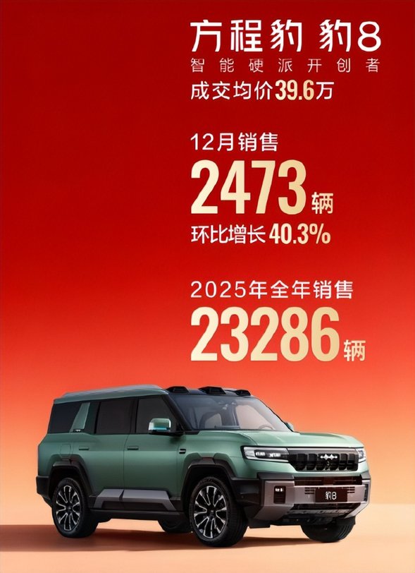 2026年开年这几天即使是处于元旦假期,但是也阻挡不了各大车企发布2025年销量的热情,这其中最让我意外的当属方程豹。不是说它卖得好有多离谱,但是全年23.46万台的销量,在硬派新能源市场也是非常亮眼的存在。