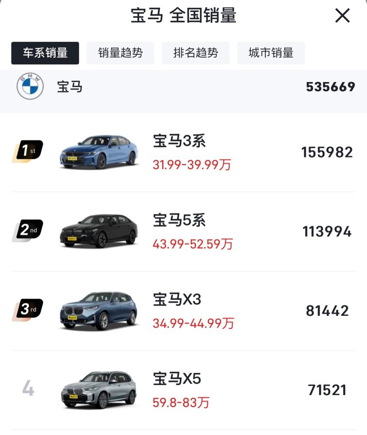 换句话说,能登上此榜单的车型,在宝马的产品谱系内都算得上不折不扣的“冷门车”。