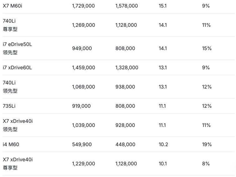 以降价幅度最大的i7 M70L为例,官降30万元后其指导价仍高达160万元,而该车型在终端市场的实际报价早已在115万元左右。