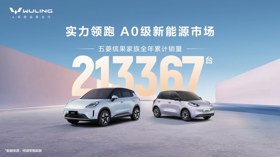 今日,五菱汽车公布缤果家族年度市场表现:2025年,缤果家族旗下车型以精准场景洞察与卓越产品力,赢得用户广泛青睐,全年销量213367辆。自上市以来,缤果家族累计销量达617705辆,持续夯实A0级纯电市场的领先地位。