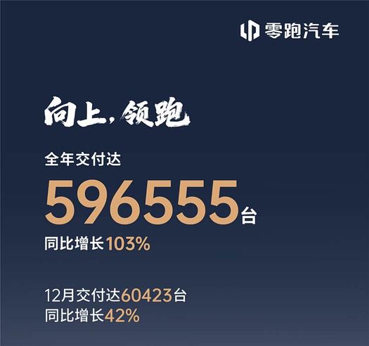数据显示,零跑2025年全年累计交付达596555台,同比增幅高达103%,不仅以119.32%的完成率轻松超越50万辆年度目标,更成功登顶造车新势力年度销量榜首。这份成绩单藏着零跑十年深耕的战略积淀,更折射出中国新能源汽车产业,正从资本驱动转向技术与效率驱动的核心趋势。