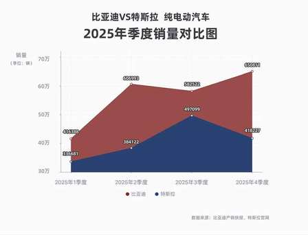 此次超越并非仅体现在年度总销量层面。市场数据表明,在2025年的四个季度里,比亚迪的全球纯电销量始终持续领先于特斯拉,这已是其连续第五个季度达成季度销量超越。
