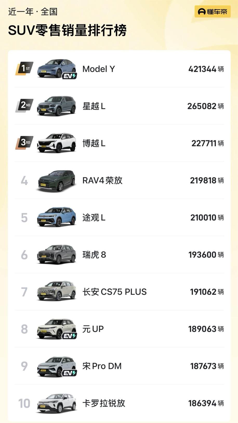 据媒体统计,在中国市场,Model Y 是近一年国内SUV销量冠军,也是连续四年来中高端车型销量的第一名。