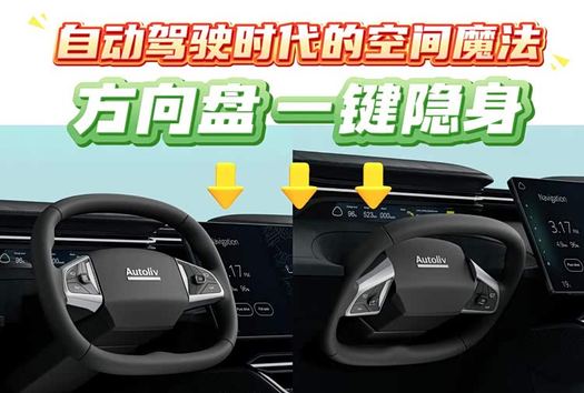 想象一下,你坐进 2026 年量产的Autoliv泰森机器人车,准备开启一场跨城之旅。轻点中控屏切换至 L4 级自动驾驶模式,原本熟悉的方向盘便缓缓收起,融入仪表板的轮廓之中,仿佛从未存在过。瞬间,驾驶席区域彻底解放,原本被方向盘占据的空间豁然开朗 —— 你可以舒展四肢靠在座椅上,享受堪比头等舱的宽敞坐姿;也可以与同行者围坐畅谈,让座舱变身移动的社交客厅;甚至能铺开电脑处理工作,或是打开绘本陪孩子阅读,小小的车内空间被赋予了多元场景的无限可能。这便是收纳式方向盘带来的魔法,它打破了传统汽车 “以驾驶为中心” 的空间逻辑,让座舱从单一的驾驶载体,升级为灵活多变的生活场景。