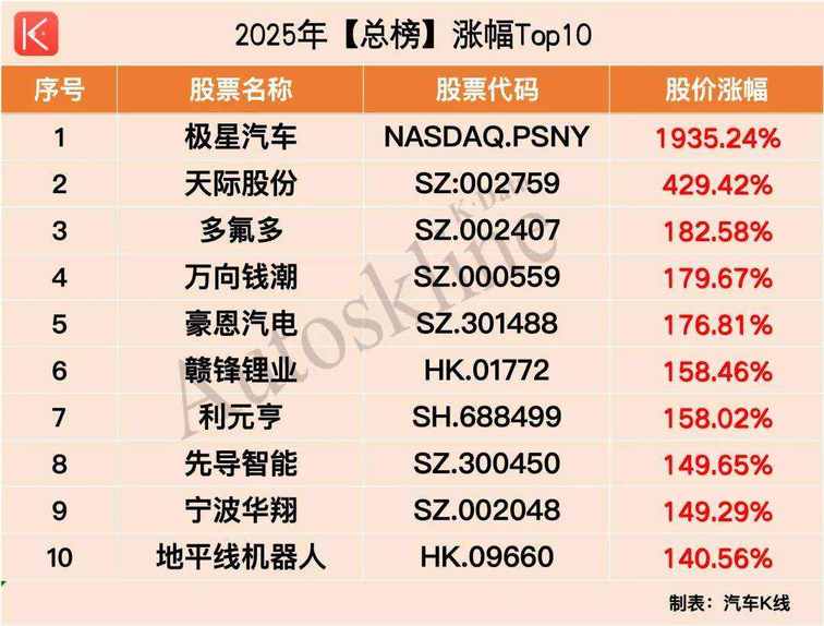 更有意思的是,乘用车板块则在极星汽车、比亚迪截然相反的技术性操作拉扯中,收获了超75%的年度涨幅。