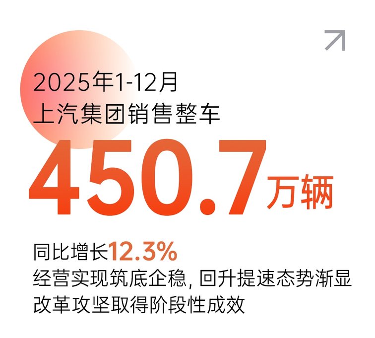 销量同比增长12.3% 上汽以“用户导向”书写2025年改革叙事