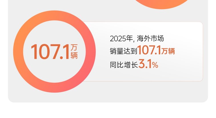 2、全球化进阶:正式发布海外战略3.0(Glocal战略),推动从“产品出海”向“价值链出海”升级。全年海外市场销量达107.1万辆,继续领跑行业。其中,在欧洲市场,MG品牌年销超过30万辆,同比增长近30%,累计销量逼近百万大关,真正在汽车发源地跻身主流。全球已形成1个“三十万辆”级和5个“五万辆”级区域市场,海外累计销量突破600万辆。