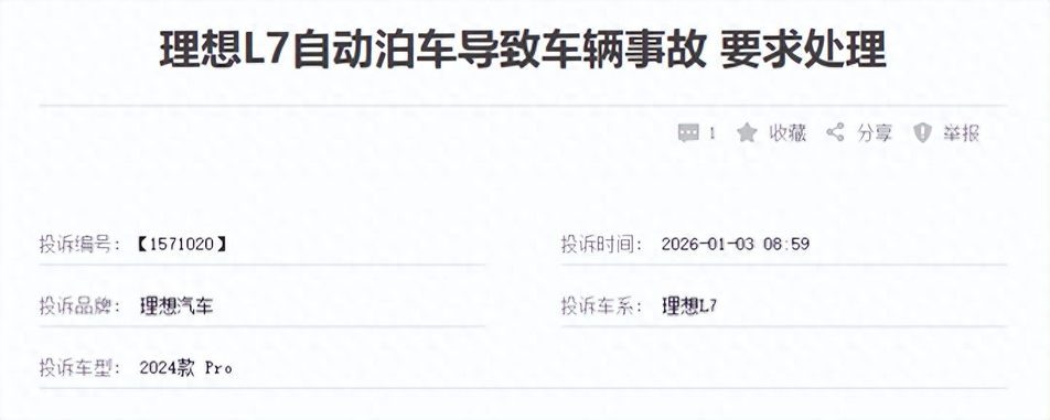 2026年1月2日凌晨,一位理想L7车主像往常一样,在车位前轻点屏幕,启动了自动泊车功能。车辆开始缓缓倒入车位,然而,下一秒,右后方传来一声闷响——车撞上了一辆停在旁边的货拉拉货车。