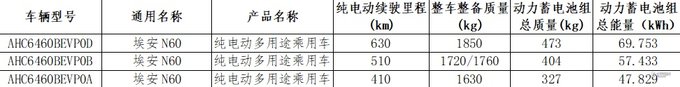近日,工信部公示信息显示,广汽埃安N60采用纯电动驱动形式,新车搭载47.829kWh、57.433kWh以及69.753kWh三种容量的电池,提供续航里程410km、510km以及630km三种续航版本车型。新车预计于2026年正式上市销售。