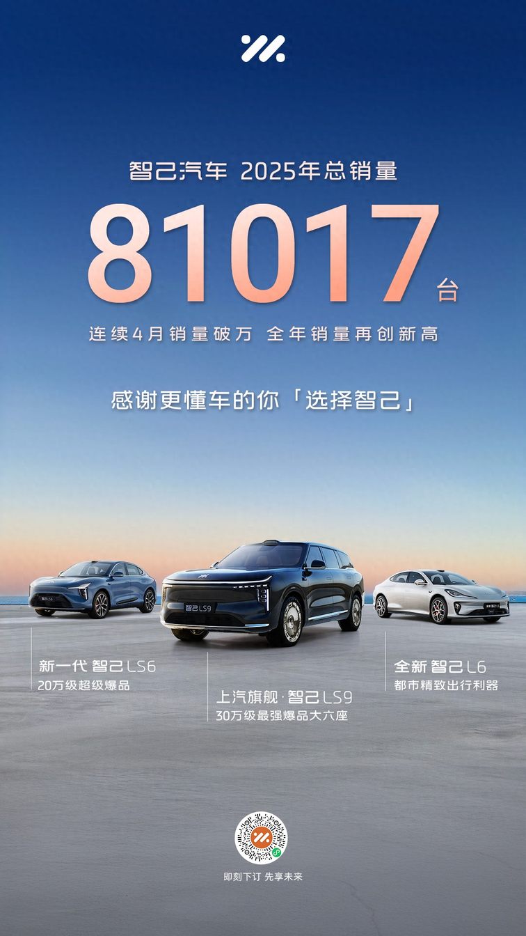 2025年的亮眼成绩,是智己成立5年来坚守长期主义,深耕技术创新、聚焦用户体验的必然结果。面向2026年,智己汽车将继续以“品牌向上+技术突围”为核心方向:加速线控底盘的量产落地,推动L3级自动驾驶的规模化应用;持续完善产品矩阵,扩大海外市场布局。2026年,智己必将更加值得期待!
