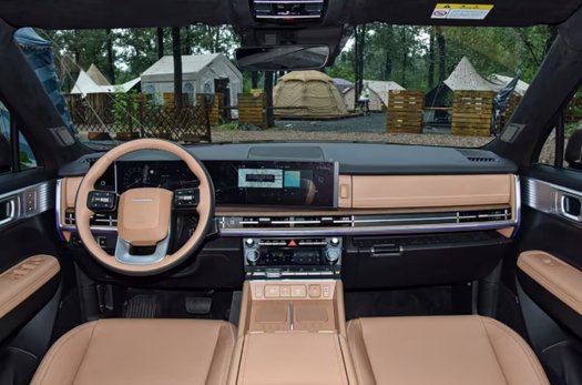 内饰部分,新车搭载双 12.3 英寸联屏,并匹配 HUD 抬头显示系统,同时配备双无线充电板与扶手箱紫外线杀菌功能。座椅布局提供 5 座、6 座、7 座三种选择,全车座椅均采用 Nappa 真皮包覆,前排座椅支持加热、通风与电动侧向支撑调节;第二排座椅配备电动调节、老板键、一键放倒及加热功能;第三排座椅可完全放平,进一步拓展后备厢储物空间。