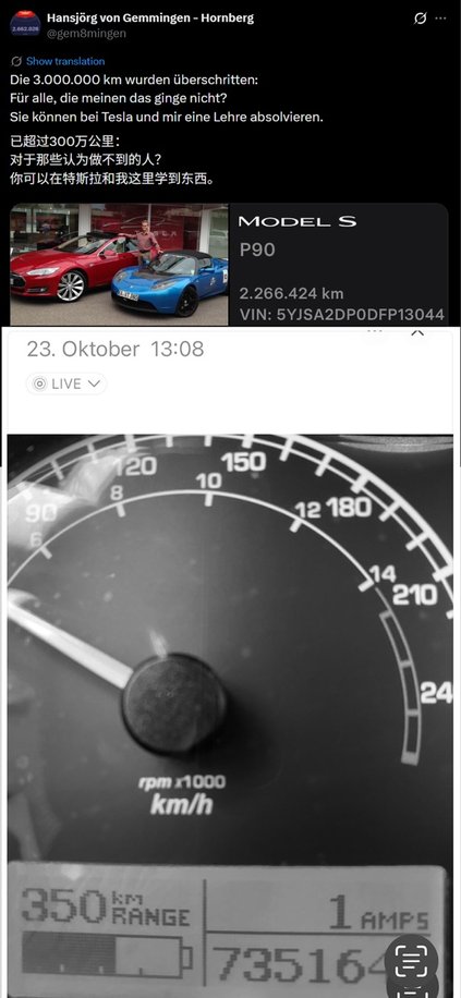 其中,德国车主Hansjrg Gemmingen驾驶的特斯拉Model S,累计行驶里程已突破300万公里,并且车辆里程数仍在不断增加,成为全球行驶里程最长特斯拉。