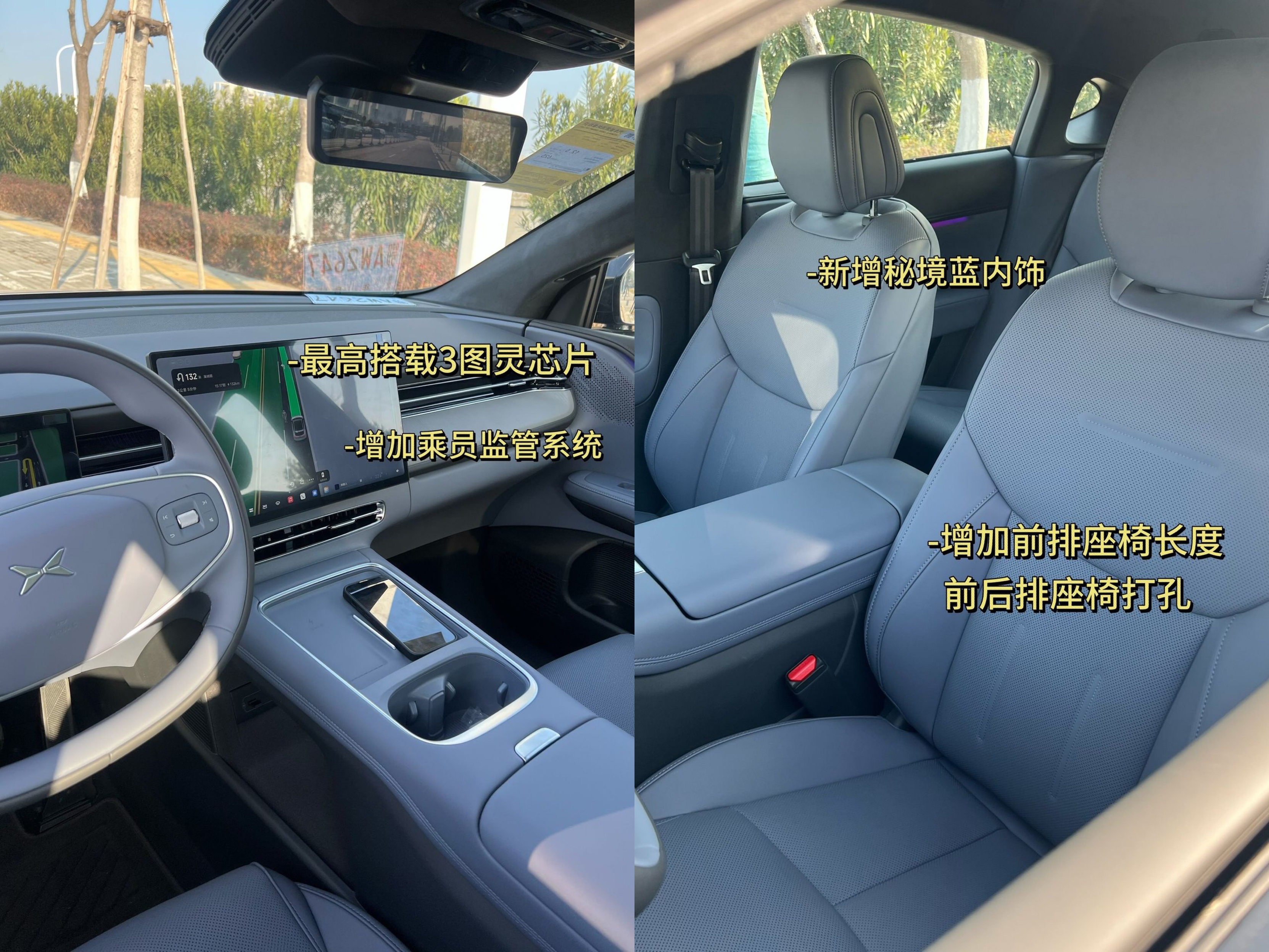 内饰除深空灰、气宇灰外,还增加了“秘境蓝”风格。15.6英寸悬浮大屏和10.25英寸全液晶仪表也没有缺席,并升级天玑AIOS 6.0车机系统,可实现主动服务座舱、端侧座舱视觉语言模型等。另外前排座椅坐垫进行加长、前后排坐垫增加打孔,还新增了乘员监控系统、RNC主动降噪等。