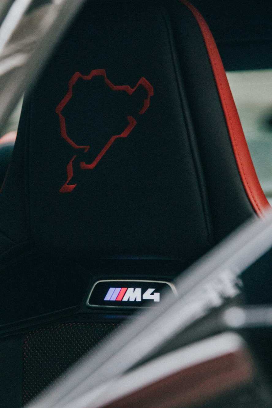 “M”碳纤维桶形座椅的存在意义只有一个,在行驶中,稳稳把你留在正确的位置。头枕上的纽博格林赛道刺绣,并不显眼,却极具分量。