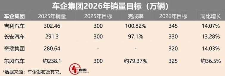 最低320万辆!四大集团2026销量目标出炉:谁能胜出?