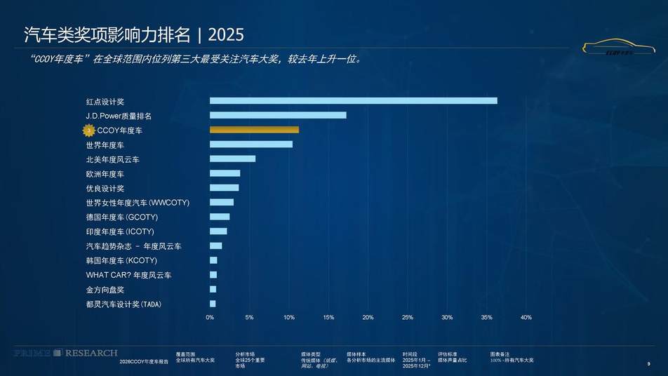 在2026 CCOY年度车评选之中,“CCOY年度设计车”奖项的合作伙伴WGSN,为CCOY年度车提供了产品设计趋势等方面的预测指导。全球策略性传播研究的行业领导者 PRIME Research,作为“CCOY年度车”的合作伙伴及大数据提供商,为此次评选提供了大数据支持。凭借权威的评委团队、成熟完善的评选机制以及大数据的支持,CCOY年度车一度被誉为“中国最中立、最公正、最权威的年度车评选”。